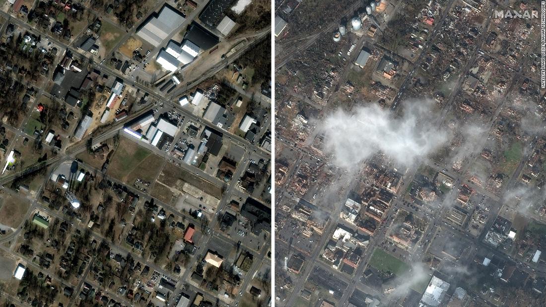 Before-and-after images show scale of tornadoes’ devastation